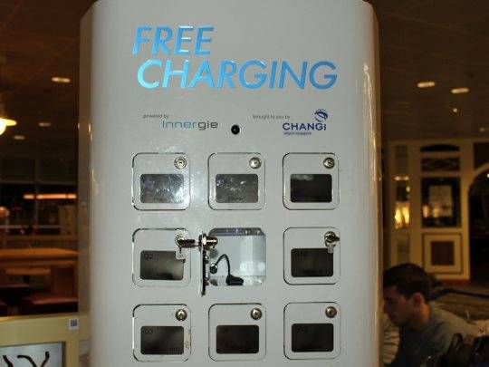 Ở Changi có cả khu vực sạc pin miễn phí dành cho những du khách có nhu cầu sạc điện thoại và các thiết bị khác.