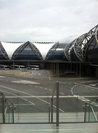 Từ Việt Nam đến Bangkok, cả hai đứa đều không bỏ bụng thứ gì từ sáng và phải mua 2 suất đồ ăn của Vietjet Air rồi ăn như chết đói. Sân bay rộng dã man và đông người Việt dã man con ngan. Lúc mình đến có 3 đoàn du lịch (2 từ TPHCM, 1 từ HN) cùng nhập cảnh nên xoay qua xoay lại toàn người Việt. Không hiểu đang ở VN hay Thái Lan.