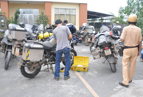 Sáng 20/11, dàn môtô gồm 10 xe BMW 1.200 phân khối mang biển kiểm soát của Thái Lan bị CSGT chặn lại do chạy vào phần đường dành cho ôtô tại Xa Lộ Hà Nội, TP HCM.