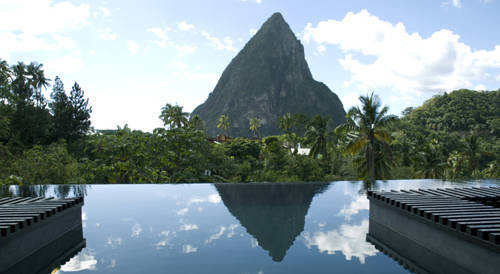 Khách sạn có tầm nhìn về phía đỉnh ngọn núi lửa Pitons. Ảnh: Google+
