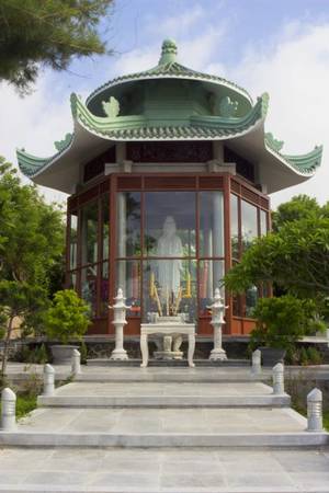 Bên trong khách sạn còn có một vườn hoa lớn với bức tượng Bồ Tát, tạo cảm giác thư thái, yên bình. Rất chú trọng đến mảng xanh trong khuôn viên nên khi tới đây ngoài màu xanh của biển bạn còn thấy xen lẫn là màu xanh của cây lá.