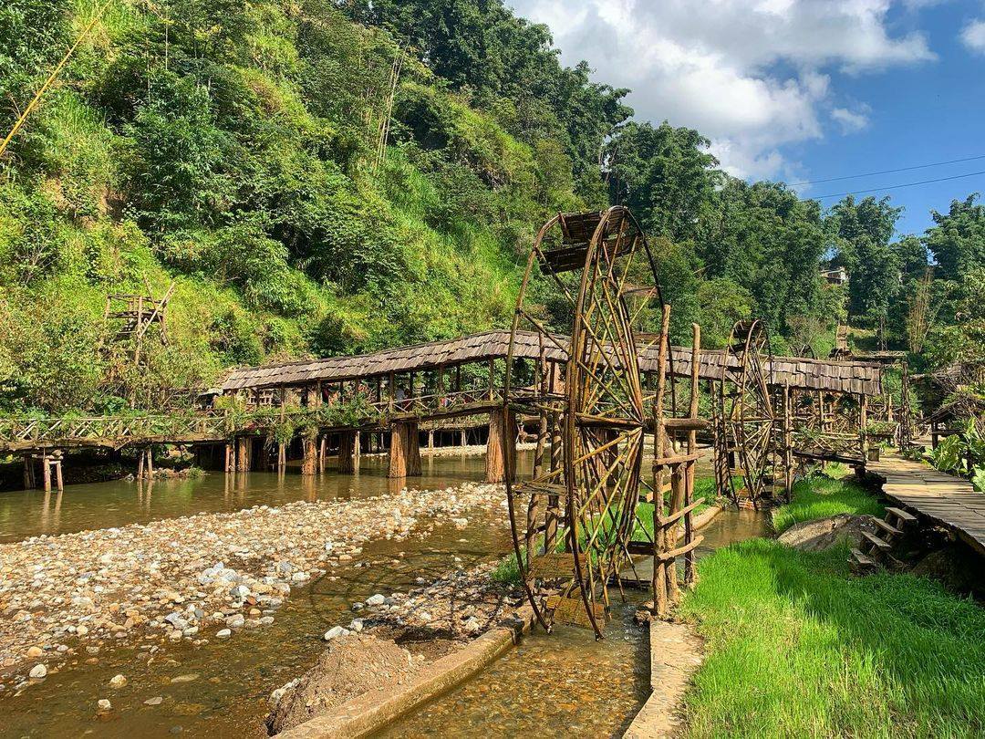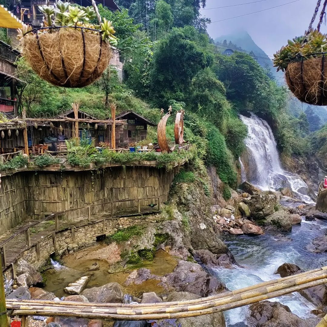 Đặc biệt, bản Tả Van thu hút đông đảo khách du lịch Tây Bắc, bởi cây cầu treo bắc ngang qua suối. Cây cầu được làm từ ván gỗ và dây mây trông rất mộc mạc, nhưng lại là điểm chụp hình siêu hút. Đứng trên cầu, bạn còn có thể nhìn ngắm trọn vẹn cảnh đẹp của Tây Bắc.