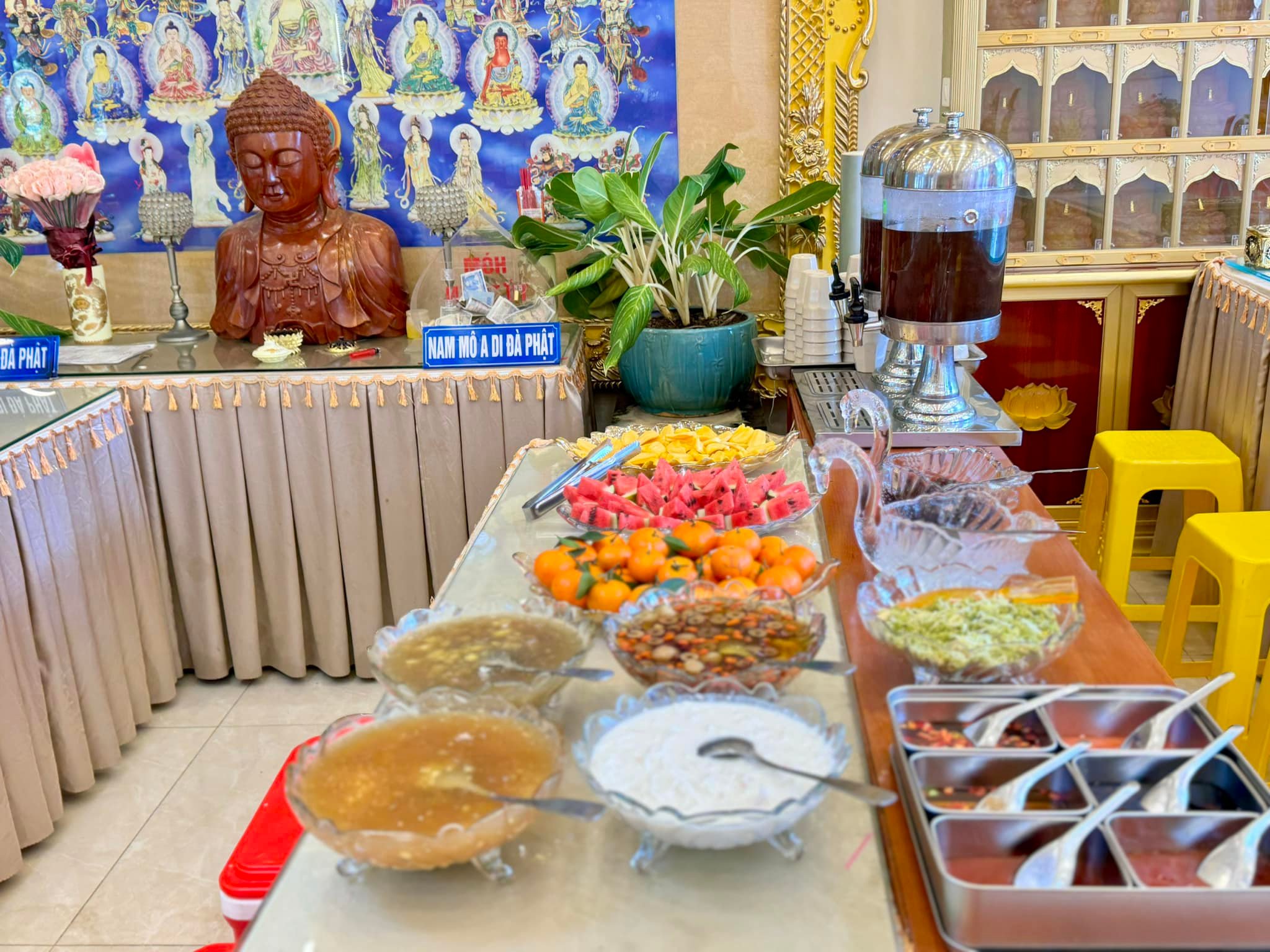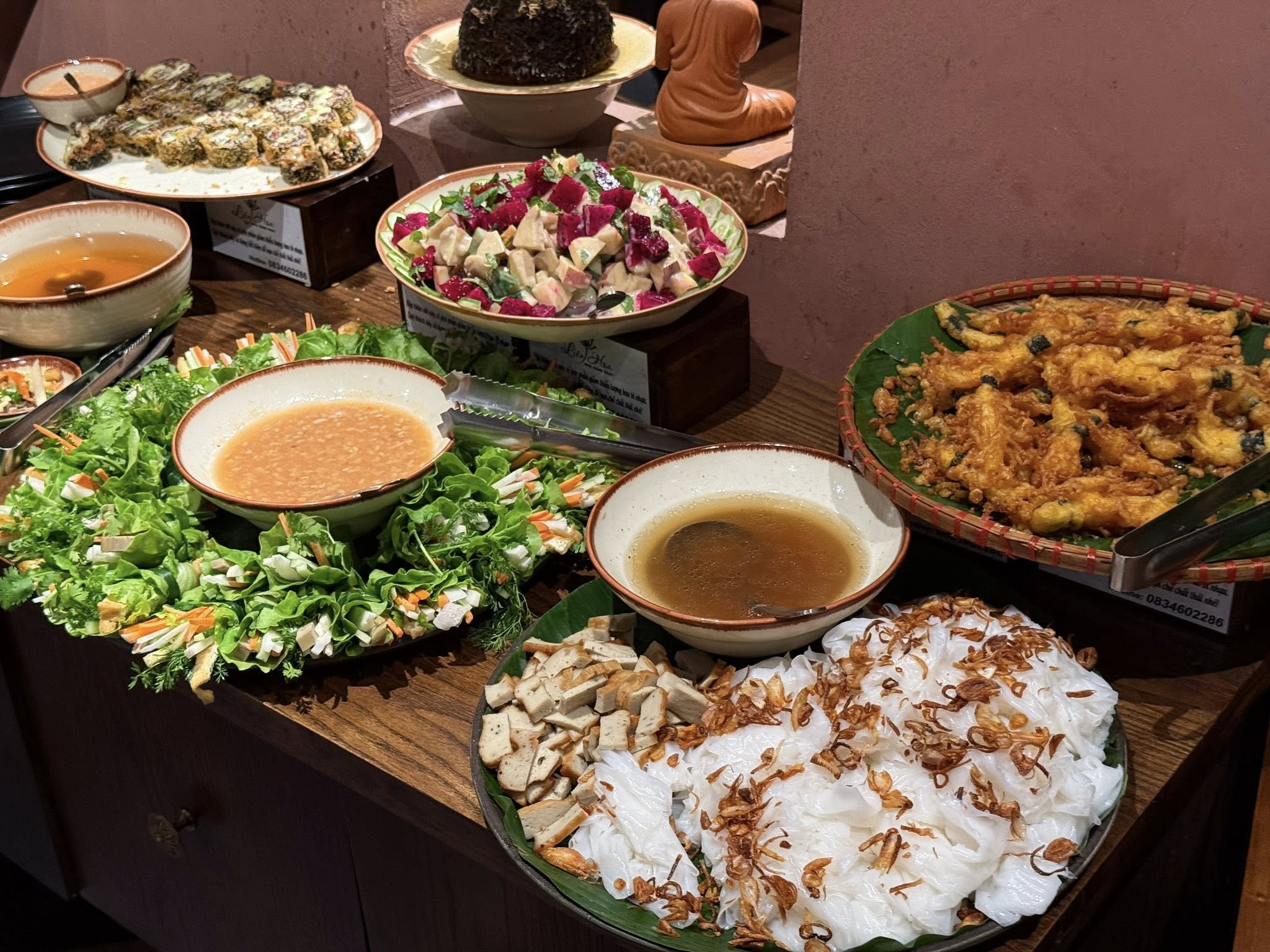Nhà hàng còn tổ chức các bữa buffet chay đa dạng món vào các ngày mồng một, rằm