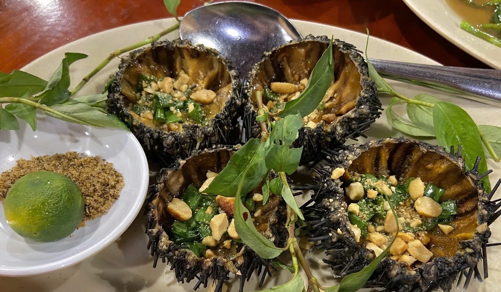 Gỏi cá trích, nhum nướng mỡ hành và ghẹ hấp là những món đặc sản không thể bỏ qua. Hải sản ở đây luôn tươi ngon, được chế biến khéo léo, mang lại hương vị đậm đà khó quên. Các món ăn này có mặt tại nhiều nhà hàng ven biển hoặc chợ đêm địa phương.