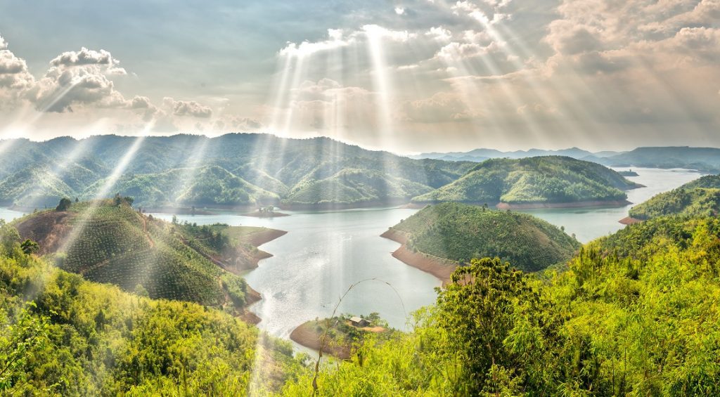 Được ví như “Vịnh Hạ Long giữa đại ngàn”, hồ Tà Đùng là một quần thể hàng trăm đảo nhỏ giữa làn nước xanh biếc. Tháng 6 là thời điểm đẹp để du khách chèo SUP, đi thuyền máy tham quan lòng hồ. Hoặc cắm trại đêm ven hồ để tận hưởng không khí trong lành. Bạn cũng có thể lựa chọn nghỉ dưỡng tại các homestay để vừa thư giãn vừa có những bức ảnh sống ảo cực chất. Tà Đùng phù hợp với những ai yêu thiên nhiên, cần một nơi chốn tĩnh lặng để “chữa lành”.