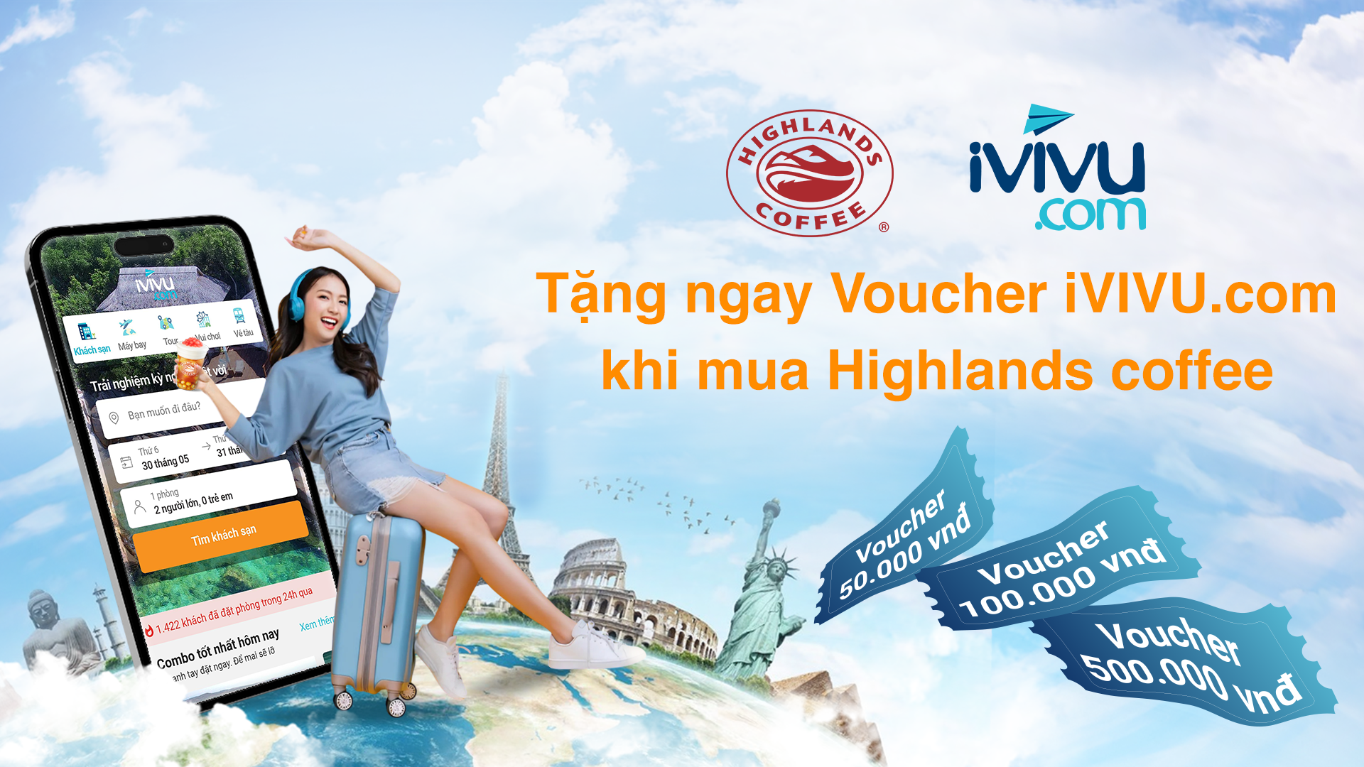 Với chương trình ưu đãi giữa iVIVU.com và Highlands, bạn dễ dàng lên kế hoạch cho những chuyến du lịch với trải nghiệm kỳ nghỉ tuyệt vời.