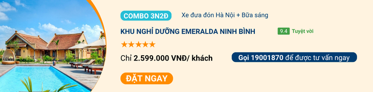 Click đặt ngay combo 2N1Đ tại khu nghỉ dưỡng Emeralda Tam Cốc Ninh Bình!