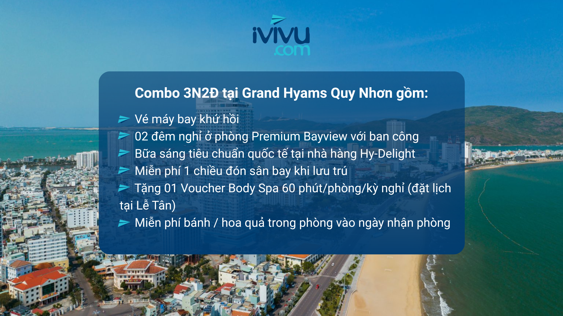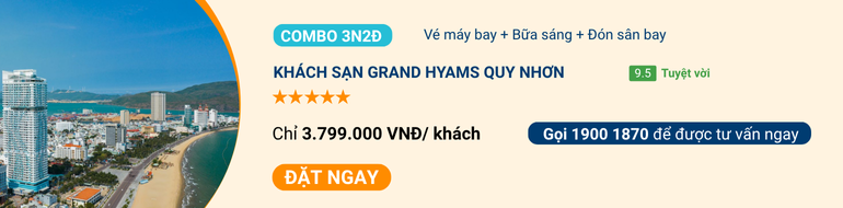 Grand Hyams Quy Nhơn là khách sạn gần biển tọa lạc tại trung tâm thành phố với tiện nghi và dịch vụ chuẩn 5 sao quốc tế. Mở ra cho du khách phong cách sống hiện đại, trẻ trung. Có không gian nghỉ dưỡng yên bình kết hợp với lối kiến trúc thời thượng và vẫn giữ được sự ấm áp. Sở hữu lợi thế tầng cao, nơi đây đưa bạn hòa vào giấc mơ biển và đón nắng mai tràn đầy năng lượng.