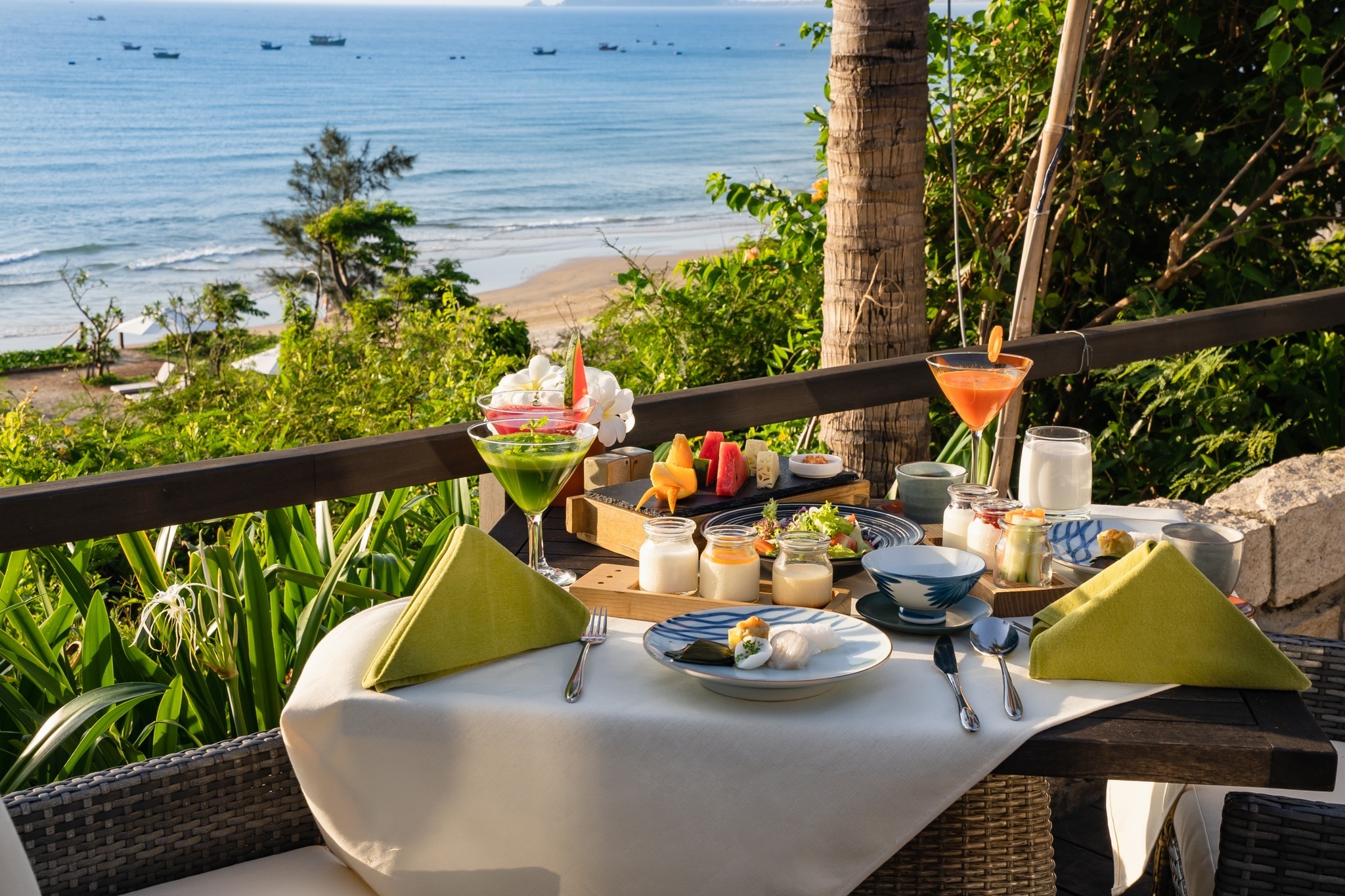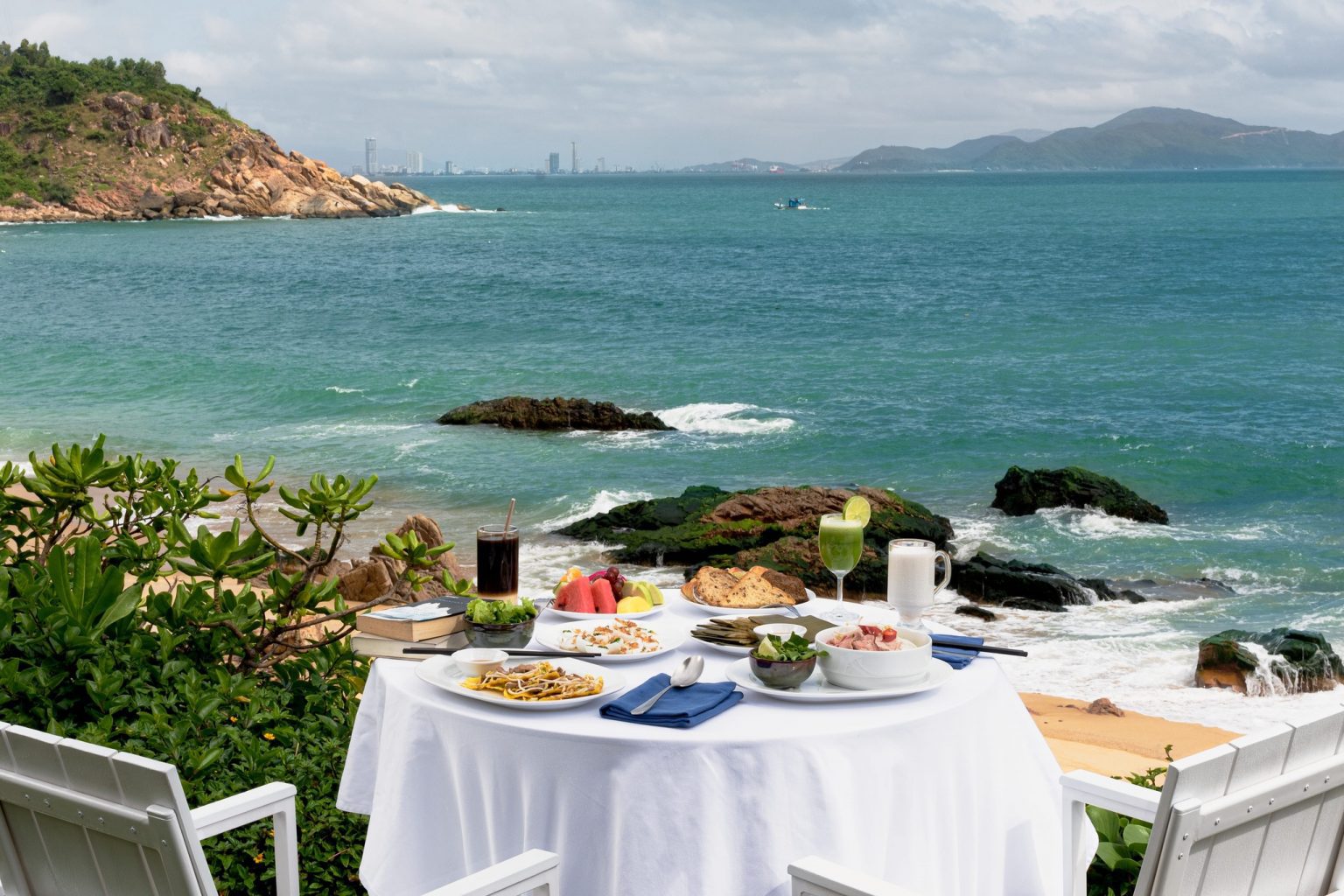 Được dùng bữa sáng đa dạng có cả ẩm thực địa phương và quốc tế. Bên cạnh đó, du khách có thể nhâm nhi ly cocktail mát lạnh bên bờ biển và đắm mình trong những cơn gió biển tươi mát.