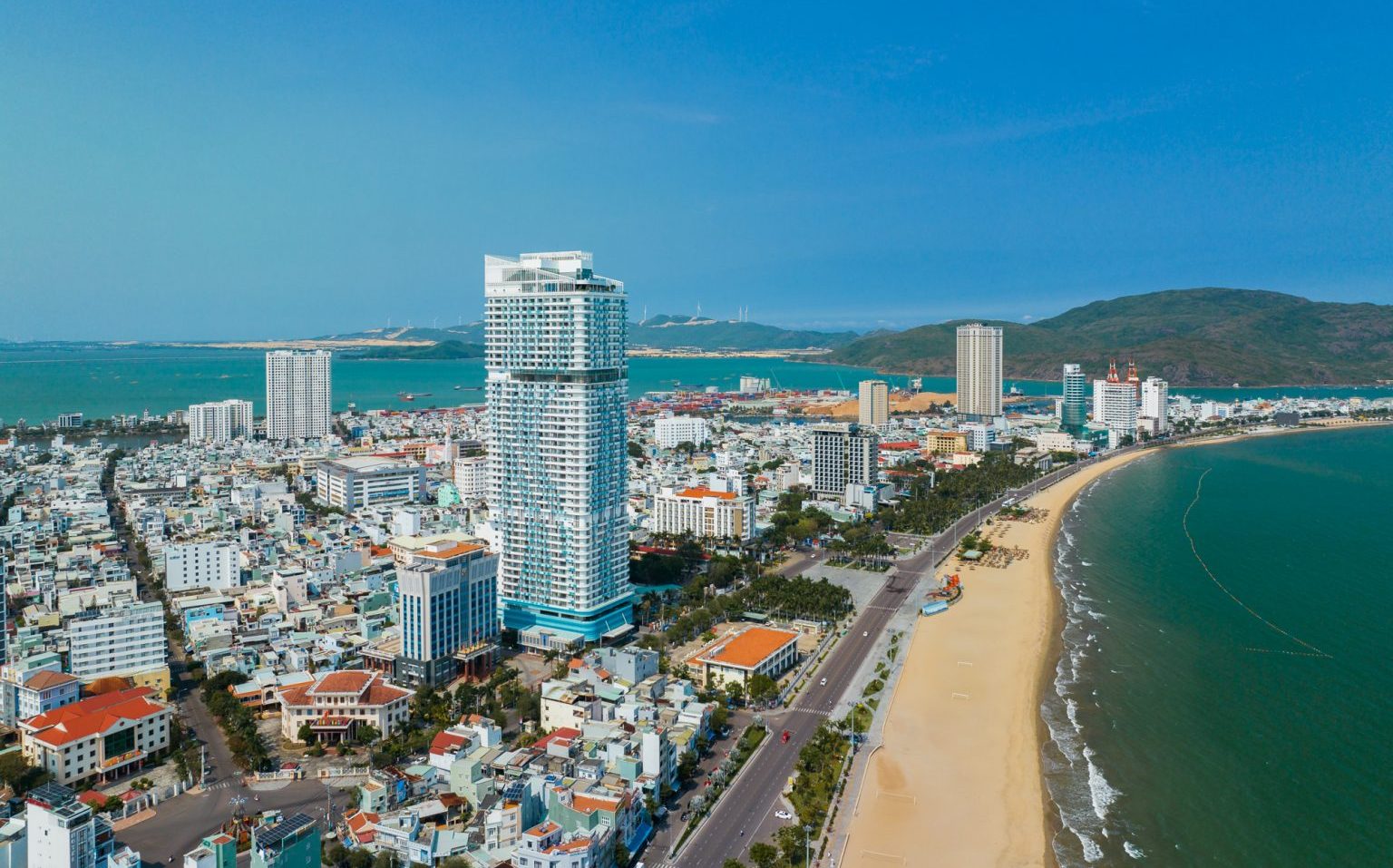The Ocean Resort by Fusion Quy Nhơn với bờ biển xanh trong, bờ cát trắng trải dài.