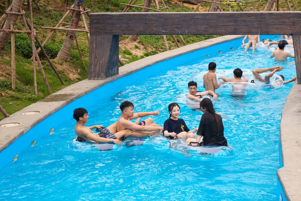 Thả trôi nhẹ nhàng trên phao giữa dòng nước êm dịu, len lỏi qua khung cảnh cây xanh mát mắt. Một khoảnh khắc thư giãn lý tưởng sau những trò chơi sôi động.