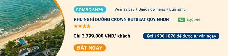 Crown Retreat Quy Nhơn cũng sẽ là một lựa chọn hấp dẫn khi lựa chọn nghỉ dưỡng ven biển. Resort nằm trên cung đường biển xanh ngát, bờ cát trắng phau trải dài. Có lối thiết kế mang đậm nét sang trọng và hiện đại của miền biển châu Âu. Bờ biển riêng tư đưa du khách tận hưởng không khí thoáng đãng bên thiên nhiên nguyên sơ.