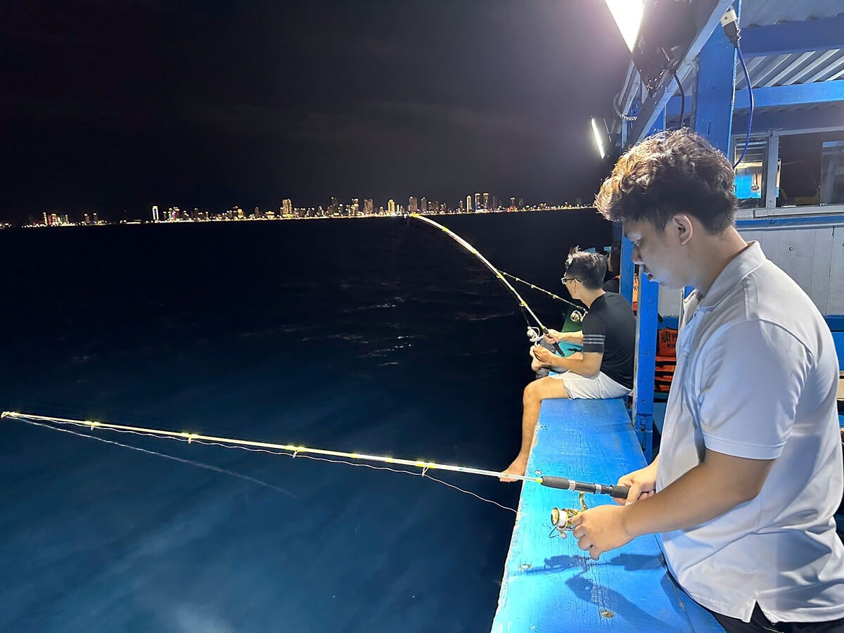 Tour câu mực đêm sẽ là lựa chọn độc đáo cho trải nghiệm du lịch Nha Trang về đêm. Du khách cùng ngư dân ra khơi, tự tay câu những con mực tươi, sau đó chế biến và thưởng thức ngay trên tàu. Đây là một hoạt động đáng nhớ cho nhóm bạn trẻ hoặc gia đình muốn gắn kết.