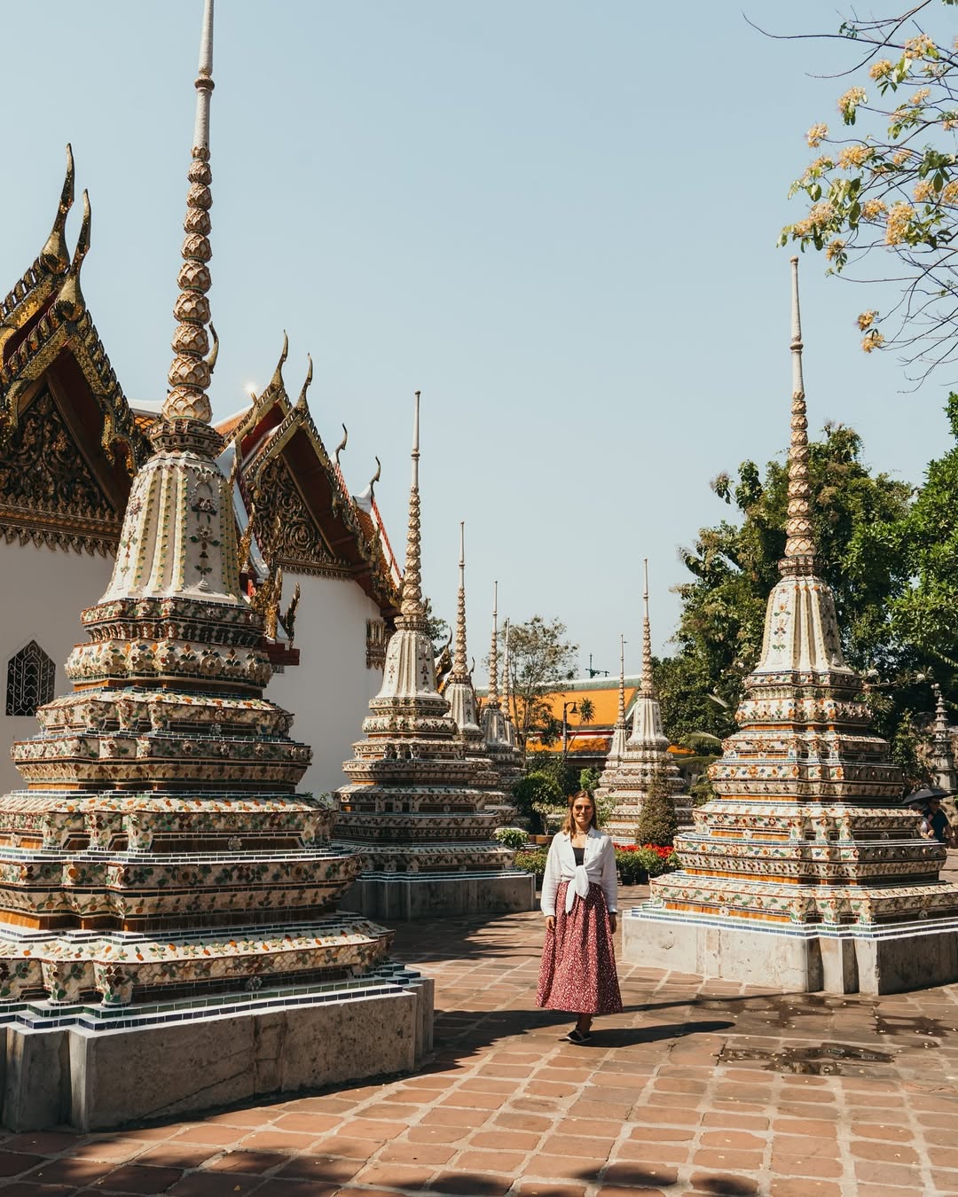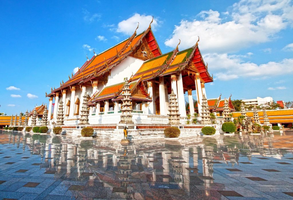 Wat Suthat nổi bật với tượng Phật bằng đồng khổng lồ và khung gỗ đỏ cao vút (Giant Swing) trước cổng chùa. Nơi đây từng là trung tâm nghi lễ của hoàng gia. Kiến trúc tinh tế cùng không gian yên bình khiến Wat Suthat trở thành điểm đến yêu thích của du khách.