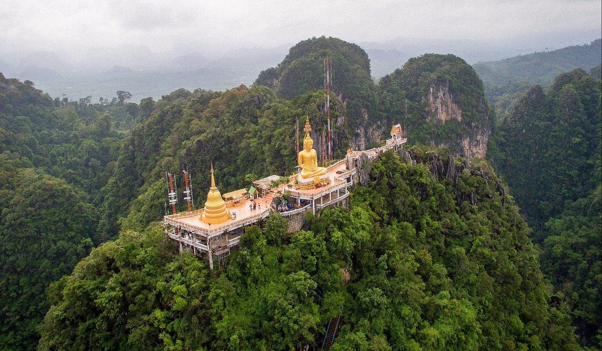 Phải leo hơn 1.200 bậc thang để lên đỉnh núi, Tiger Cave Temple là nơi du khách vừa thử thách sức bền, vừa chiêm ngưỡng toàn cảnh Krabi ngoạn mục. Ngôi chùa còn gắn liền với truyền thuyết về những con hổ từng sống trong hang động, khiến nơi đây mang màu sắc huyền bí và linh thiêng.