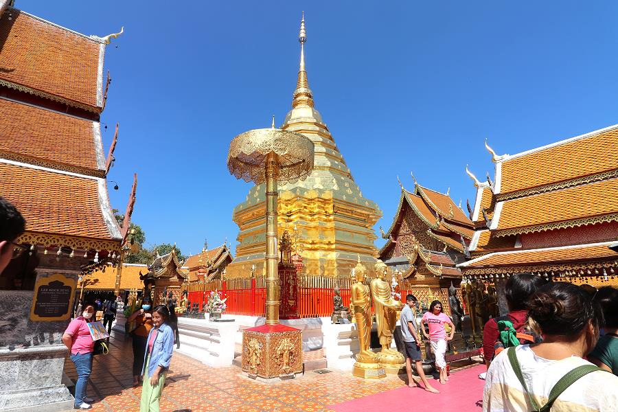 Trên ngọn núi cao ở Chiang Mai, Wat Phra That Doi Suthep nổi bật với bảo tháp vàng óng ánh. Đây là biểu tượng tâm linh của cả vùng, thu hút rất đông Phật tử và du khách mỗi năm. Hành trình leo 309 bậc thang Naga đưa bạn đến với không gian linh thiêng và tầm nhìn toàn cảnh Chiang Mai tuyệt đẹp.
