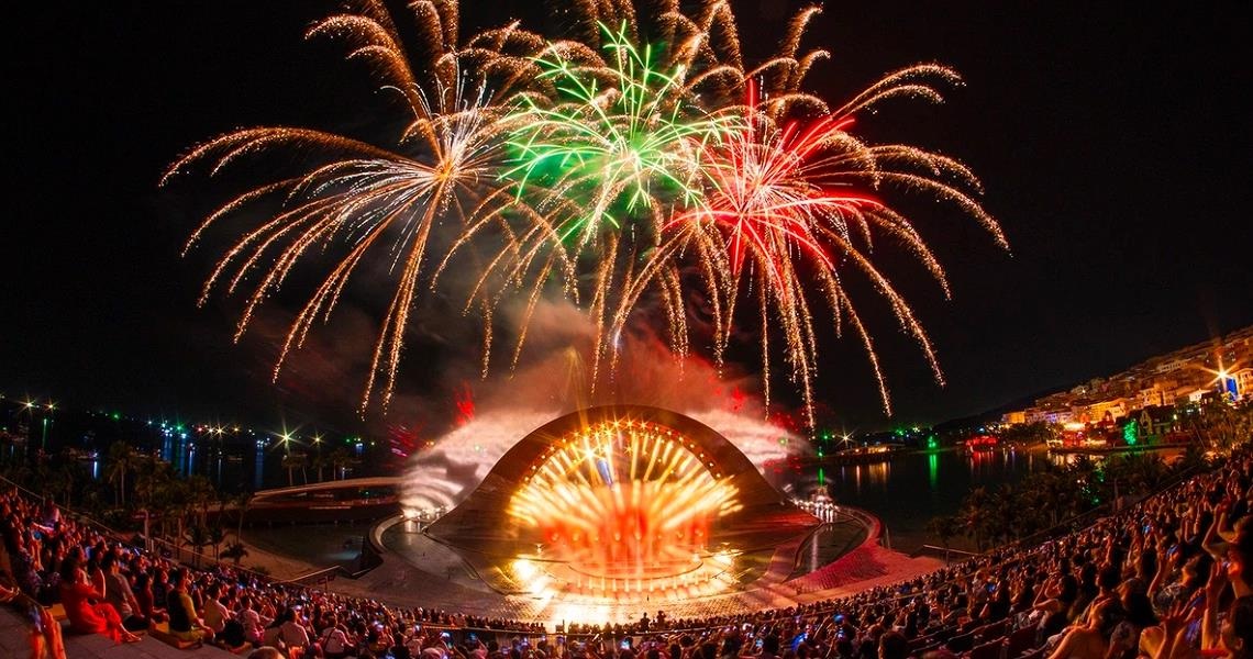 Với ưu đãi đặc biệt “Beloved Vietnam 02/09 – Tổ quốc ta cờ hoa rạng rỡ” đang diễn ra, du khách sẽ được chiêm ngưỡng “Kiss of the Sea” – màn trình diễn nhạc nước cao cấp có giá tốt tại Thị trấn Hoàng Hôn. Hứa hẹn sẽ là vé vui chơi khuyến mãi hấp dẫn dịp này.