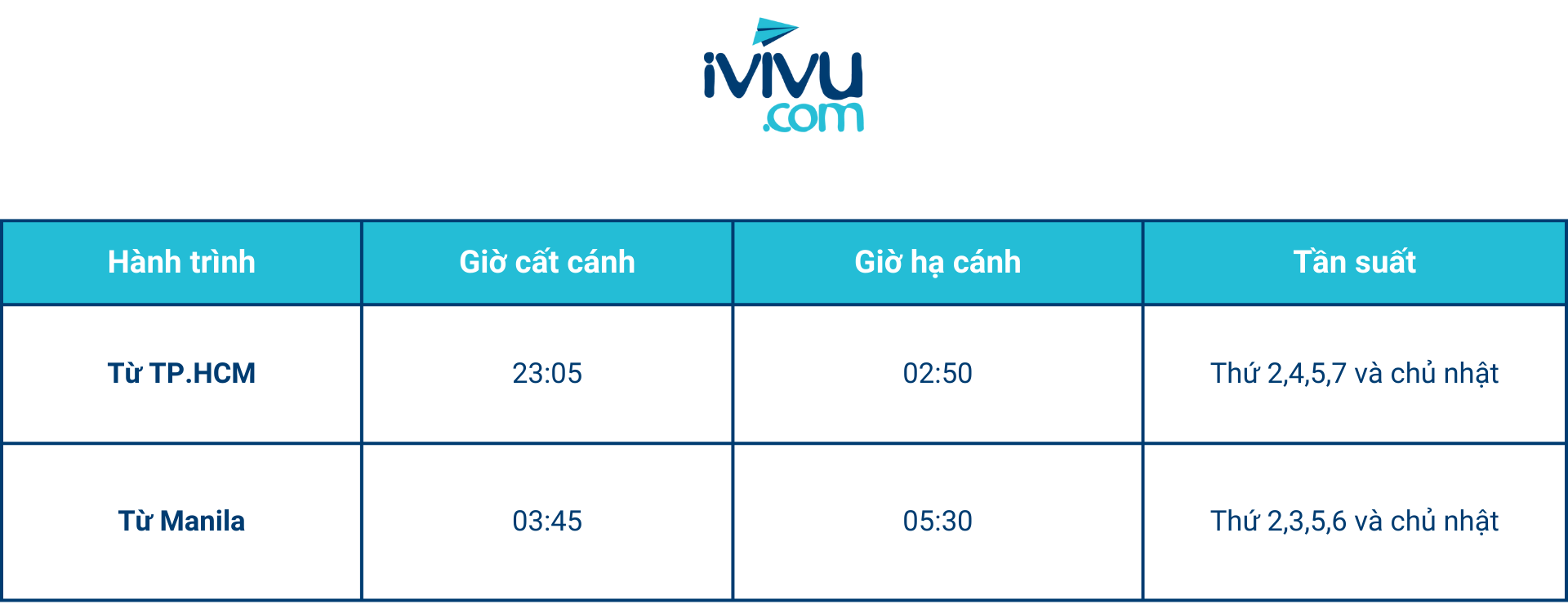 *Lịch trình bay chi tiết: TP.HCM ⇄ Manila