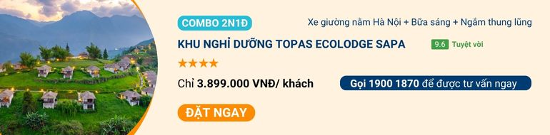 Nhắc đến resort Sapa nổi tiếng, không thể bỏ qua Topas Ecolodge. Khu nghỉ từng được CNN bình chọn là một trong những nơi đáng đến nhất thế giới. Nằm biệt lập giữa núi rừng Hoàng Liên Sơn, resort gồm các bungalow bằng đá granit nằm rải rác trên đồi. Mỗi căn đều hướng ra thung lũng xanh mướt.