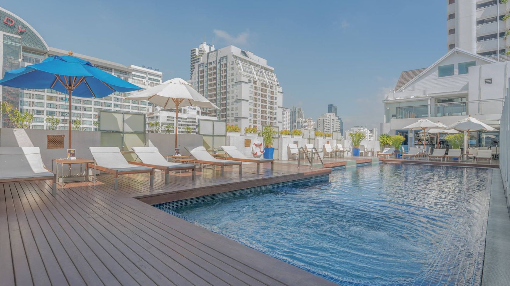 Hồ bơi trên sân thượng với tầm nhìn thành phố