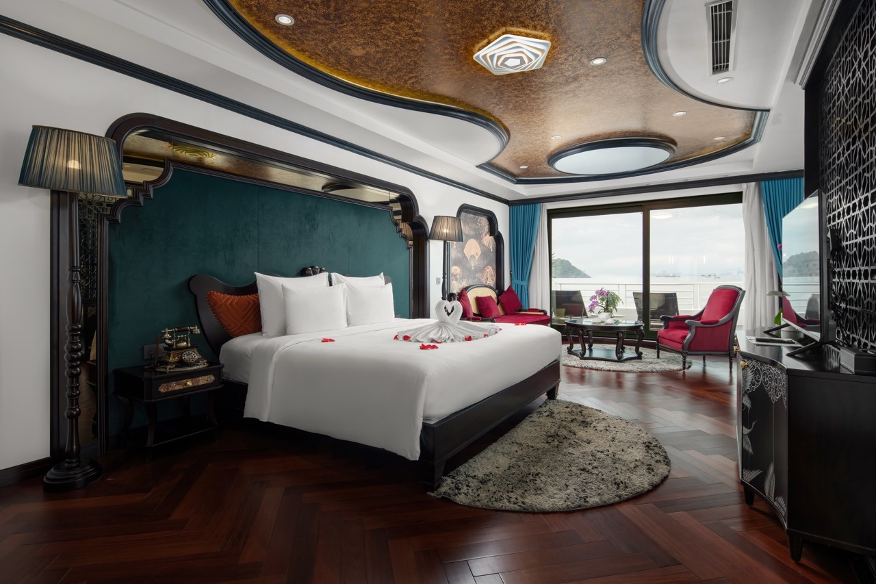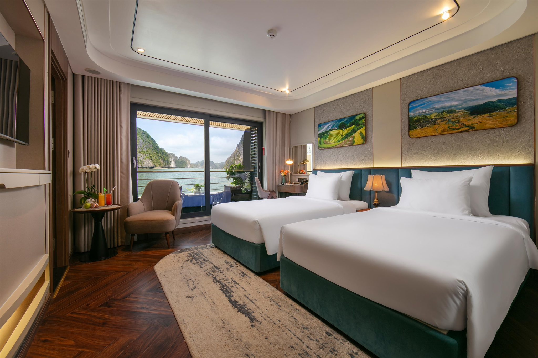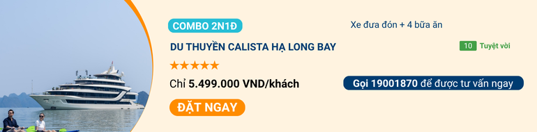 Du thuyền Calista Hạ Long Bay được thiết kế theo tiêu chuẩn 5 sao hiện đại. Các phòng nghỉ đều có ban công riêng nhìn ra vịnh, cùng hệ thống nhà hàng – bar – sundeck giúp bạn tận hưởng trọn vẹn. Đây là du thuyền Hạ Long phù hợp cho kỳ nghỉ của cặp đôi, gia đình hay nhóm bạn.