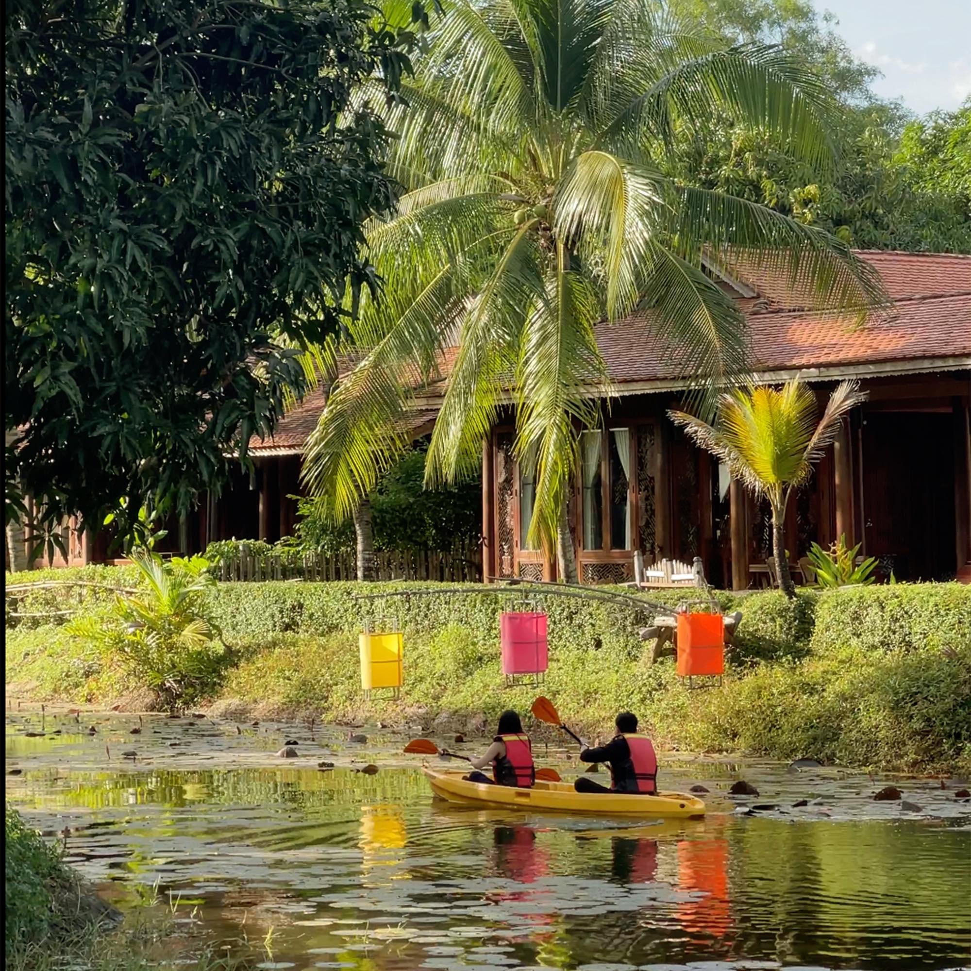 Chèo thuyền kayak ngay trong khuôn viên rộng lớn của resort