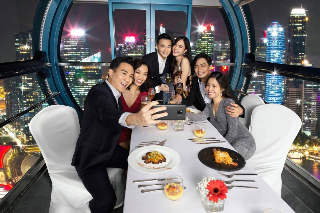 165 Sky Dining mang đến cho bạn một bữa tối lãng mạn ở độ cao 165m trên vòng quay Singapore Flyer. Khi buồng cabin từ từ nâng bạn lên không trung, khung cảnh lung linh của toàn khu Marina Bay, Gardens by the Bay sẽ mở ra trước mắt.
