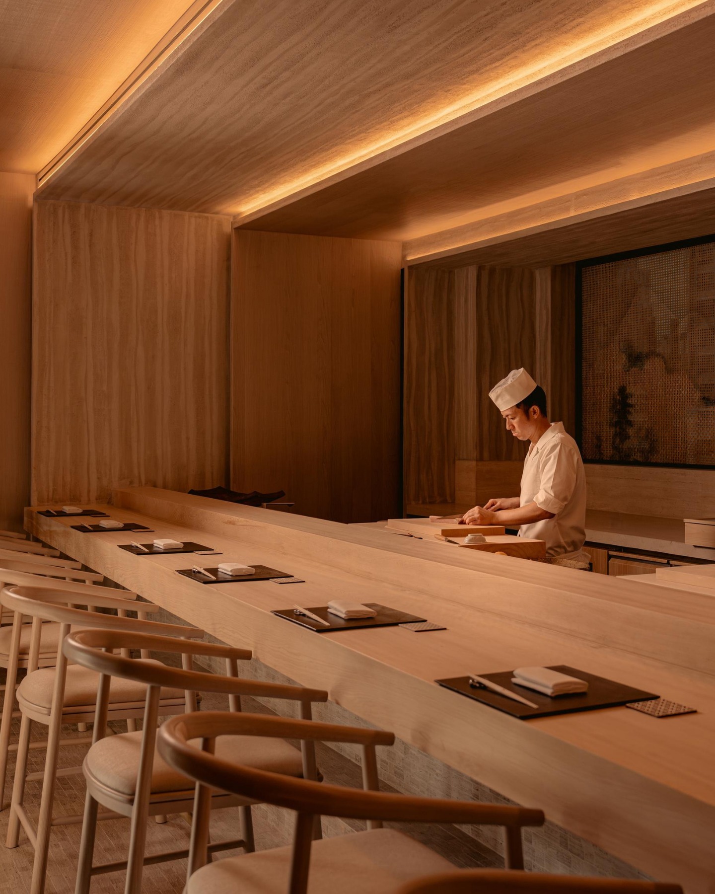 Ngay từ khi bước vào sảnh chính, bạn sẽ cảm nhận được tinh thần Aman rõ rệt. Sự yên tĩnh, ánh sáng dịu nhẹ và vẻ đẹp tinh tế của vật liệu tự nhiên. Jean-Michel Gathy đã lựa chọn gỗ, đá và tông màu trung tính làm chủ đạo, tạo nên không gian mềm mại và thanh lịch.