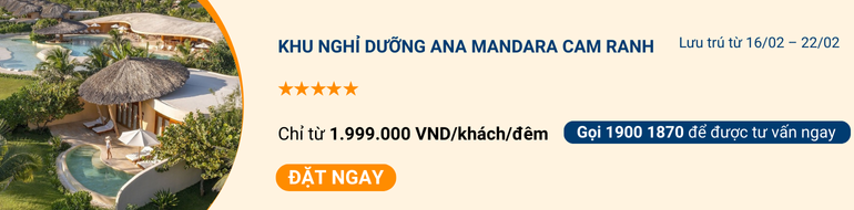 Để có kỳ nghỉ đầu năm hứng khởi tại Ana Mandara Cam Ranh, bạn không thể bỏ lỡ chương trình Flash Sale dịp Tết Âm lịch, với ưu đãi có hạn. Khi đặt phòng tại iVIVU.com, quý khách được áp dụng mức giá chỉ từ 1.999.000 VND/khách/đêm, cho giai đoạn lưu trú từ 16/02/2026 – 22/02/2026 (điều kiện đặt phòng trước ngày 15/01/2026). Đây là cơ hội lý tưởng để trải nghiệm khu nghỉ dưỡng biển cao cấp trong dịp cao điểm Tết với chi phí tiết kiệm.