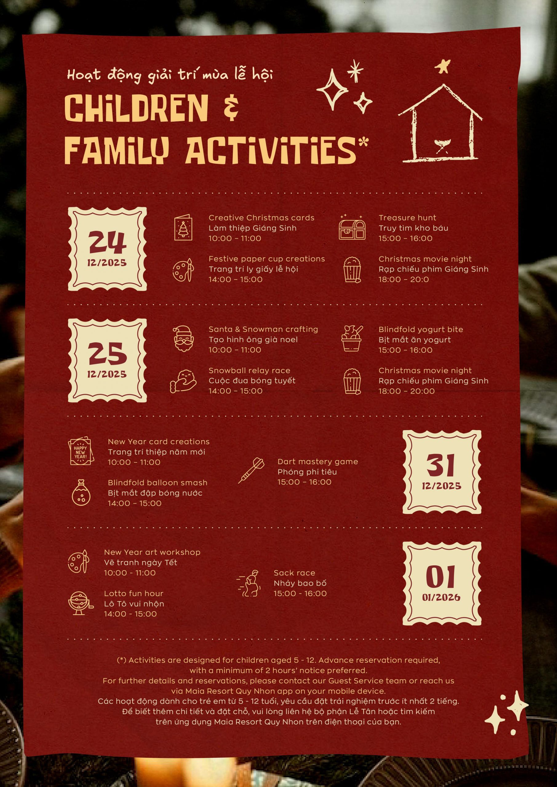 ✨Một mùa Giáng Sinh lại về và một năm mới sắp đến! Năm nay, The Ocean Resort by Fusion Quy Nhơn & Maia Quy Nhơn sẽ tổ chức chuỗi hoạt động mừng Giáng Sinh – Năm Mới (2025–2026) đầy ấn tượng. Chương trình này kết hợp giữa trải nghiệm ẩm thực tinh tế trong mùa lễ hội với hành trình wellness đầy thư giãn, cùng các hoạt động thú vị cho cả gia đình.