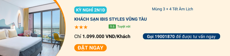 Ưu đãi Tết độc quyền iVIVU: 2N1Đ ibis Styles Vũng Tàu chỉ 1.099.000 VND/khách, áp dụng mùng 3 & 4 Tết Âm lịch 2026. Nghỉ dưỡng phong cách trẻ trung, sát biển Bãi Sau.