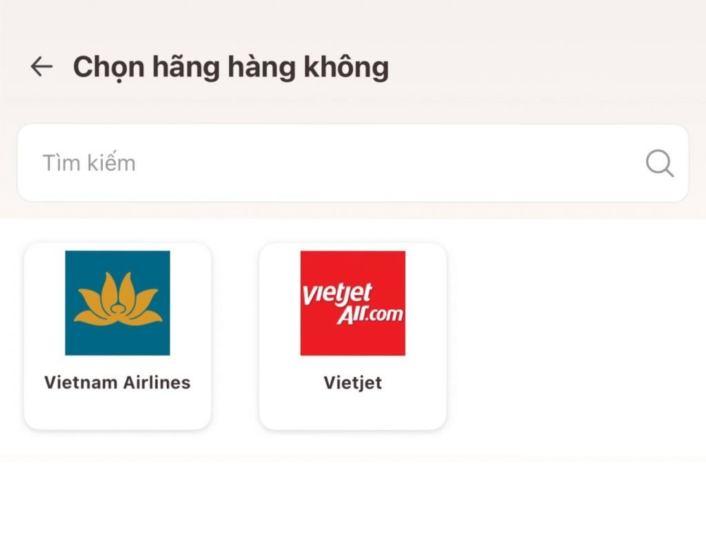 Tiếp tục chọn hãng hàng không