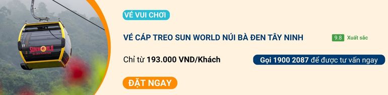 Cáp treo núi Bà Đen đưa du khách chiêm ngưỡng cảnh núi non hùng vĩ và quần thể tâm linh trên đỉnh núi. Hành trình cáp treo êm ái, khung cảnh thay đổi liên tục. Phù hợp cho chuyến du lịch gia đình hoặc hành hương. Đây là vé vui chơi khuyến mãi tháng 12 hấp dẫn tại iVIVU.com.
