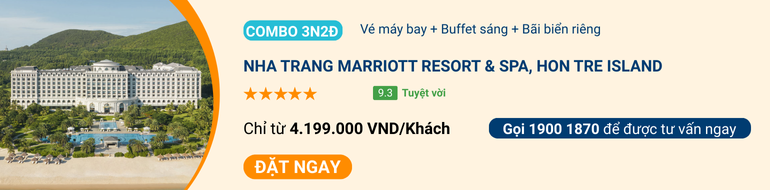 Nha Trang Marriott Resort & Spa, Hon Tre Island nằm trên đảo Hòn Tre, cách trung tâm thành phố chỉ 15 phút di chuyển. Khu nghỉ dưỡng sở hữu bãi biển dài 2km, hồ bơi hướng biển, spa trị liệu phong cách Việt Nam và hệ thống nhà hàng tinh tế.