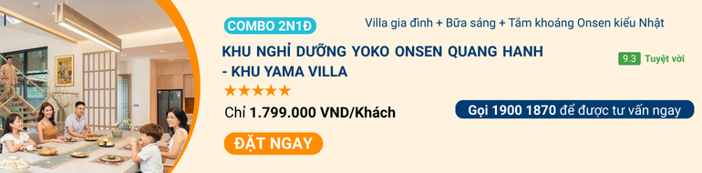 Yoko Onsen Quang Hanh – Yama Villa là khu villa onsen cao cấp. Lý tưởng cho kỳ nghỉ riêng tư cùng gia đình và bạn bè. Nơi đây có nguồn khoáng nóng được dẫn trực tiếp vào từng căn villa. Mỗi villa đều sở hữu không gian đậm chất Nhật Bản, với các khu sinh hoạt riêng biệt. Giữa cảnh quan thiền tĩnh lặng và nội thất gỗ ấm áp, Yama Villa mang đến trải nghiệm nghỉ dưỡng 5 sao chuẩn Nhật. Đồng thời du khách có thể tận hưởng trọn vẹn các tiện ích chung tại Yoko Onsen Quang Hanh như spa và nhà hàng.