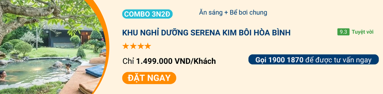 Serena Kim Bôi Hòa Bình là điểm đến quen thuộc khi nhắc đến khu nghỉ dưỡng có dịch vụ tắm khoáng nóng ở miền Bắc. Nơi đây phù hợp cho gia đình và cả người lớn tuổi.