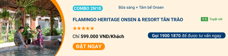 Flamingo Heritage Onsen & Resort Tân Trào là resort khoáng nóng ở miền Bắc gây ấn tượng với không gian hiện đại hòa quyện cùng nét đẹp di sản bên dòng sông Phó Đáy hiền hòa. Điểm nhấn của resort là Seva Onsen & Spa. Với hệ thống tắm khoáng nóng giúp thanh lọc cơ thể, kết hợp các liệu trình dưỡng sinh chuyên sâu. Mang đến sự cân bằng và phục hồi năng lượng. Giữa thiên nhiên xanh mát và không gian đậm dấu ấn lịch sử, Flamingo Tân Trào mang đến trải nghiệm nghỉ dưỡng an yên, đầy ý nghĩa sâu sắc.