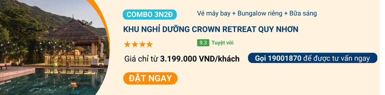 Combo 3N2Đ bao gồm vé máy bay và bữa sáng, nghỉ dưỡng trong bungalow riêng tư. Nếu bạn đang tìm kiếm kỳ nghỉ yên bình và khác biệt thì combo resort Quy Nhơn này là lựa chọn đáng cân nhắc.