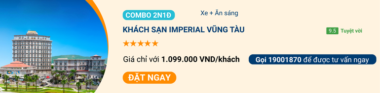Khách sạn Imperial Vũng Tàu tọa lạc ngay Bãi Sau trên đường Thùy Vân sôi động. Khách sạn mang kiến trúc châu Âu cổ điển, sang trọng tựa như cung điện nước Anh dưới thời Nữ hoàng Victoria. Sự kết hợp hài hòa giữa không gian kiến trúc mang phong cách hoàng gia và tiện nghi hiện đại, đem đến trải nghiệm nghỉ dưỡng đẳng cấp giữa lòng phố biển.
