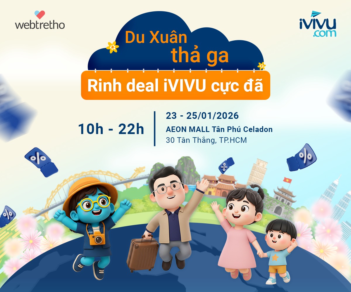 iVIVU.com sẽ chính thức góp mặt tại sự kiện Webtretho Family Fair 5 – Aeon Mall Tân Phú Celadon, ngày hội gia đình quy mô lớn do Webtretho tổ chức. Chương trình quy tụ đông đảo khách tham quan cùng chuỗi hoạt động mua sắm – vui chơi – nhận quà xuyên suốt 3 ngày liên tục.