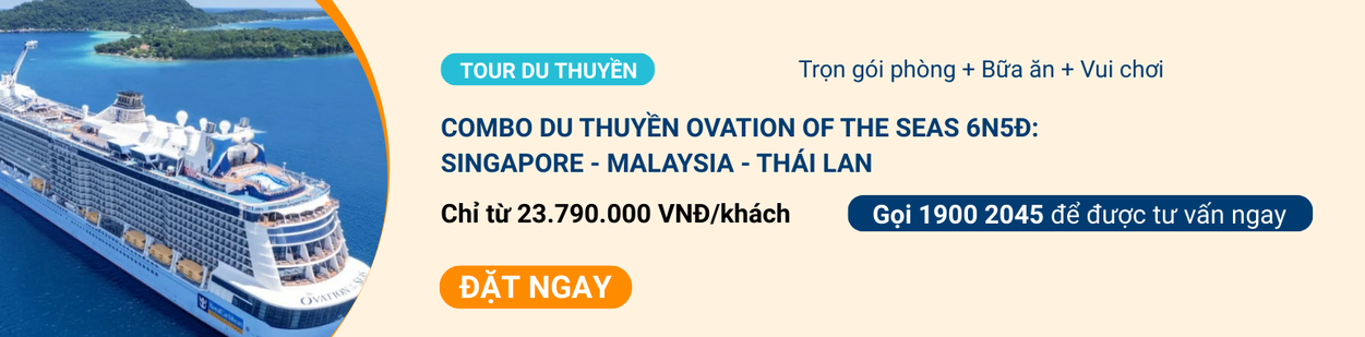 Nếu bạn muốn khám phá nhiều quốc gia hơn trong một chuyến đi. Hành trình 5 ngày 4 đêm Singapore – Malaysia – Thái Lan trên Ovation of the Seas là lựa chọn rất đáng cân nhắc.
