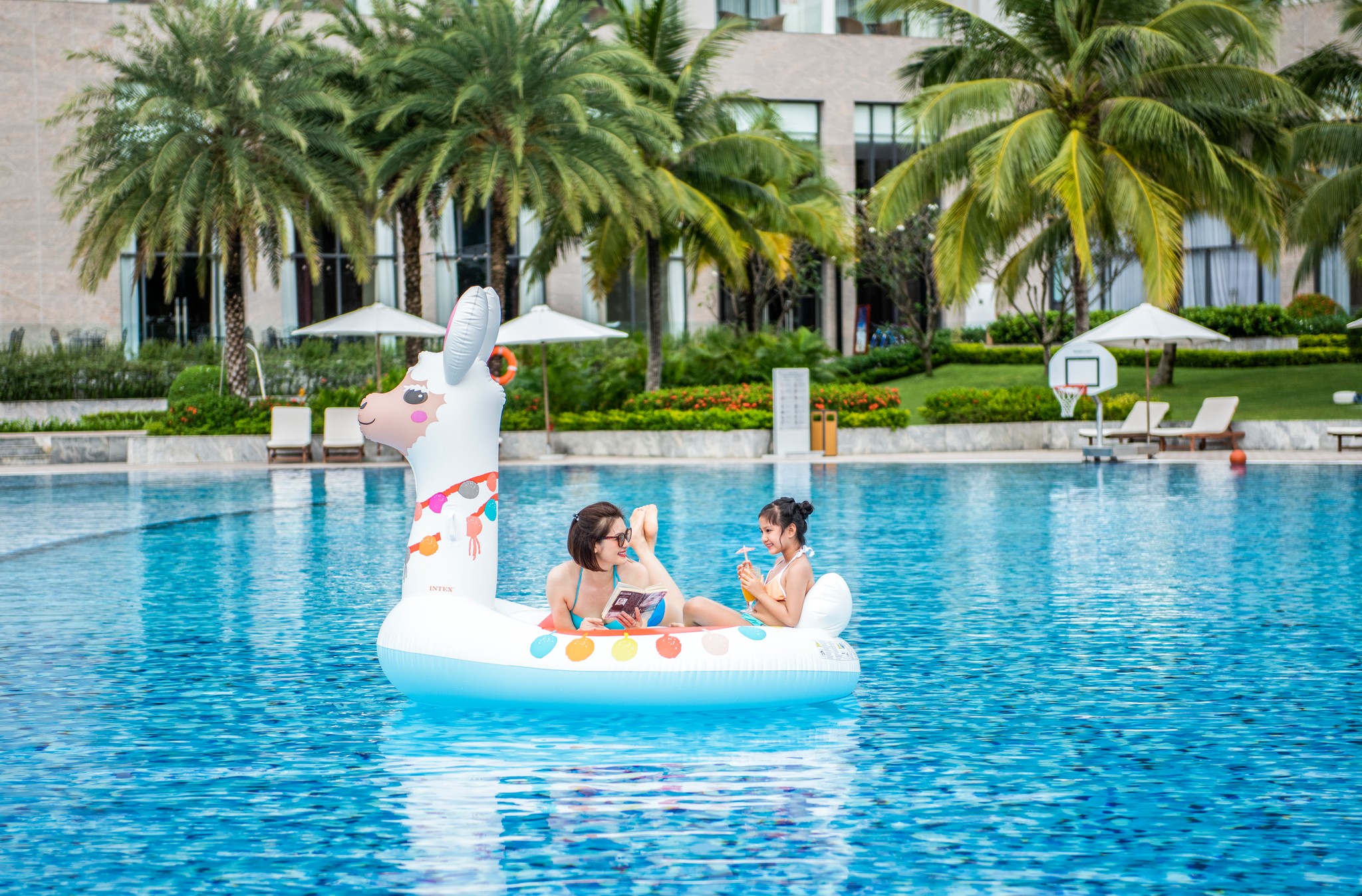 Bể bơi ngoài trời rộng lớn, phù hợp cho cả người lớn và trẻ em