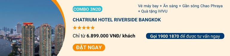 Chatrium Hotel Riverside là khách sạn ở Bangkok độc đáo nằm bên bờ sông Chao Phraya. Phòng nghỉ được thiết kế hiện đại, nhiều hạng phòng có ban công hướng sông. Khách sạn phù hợp cho du khách muốn tận hưởng sự yên bình, đồng thời dễ dàng di chuyển đến các điểm tham quan nổi tiếng.