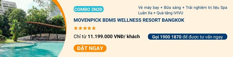 Mövenpick BDMS Wellness Resort Bangkok nổi bật với dịch vụ chăm sóc sức khỏe toàn diện giữa lòng Bangkok. Nằm trong khuôn viên xanh rộng lớn, khách sạn mang đến sự thư giãn cùng hệ thống spa, trung tâm wellness và ẩm thực lành mạnh.
