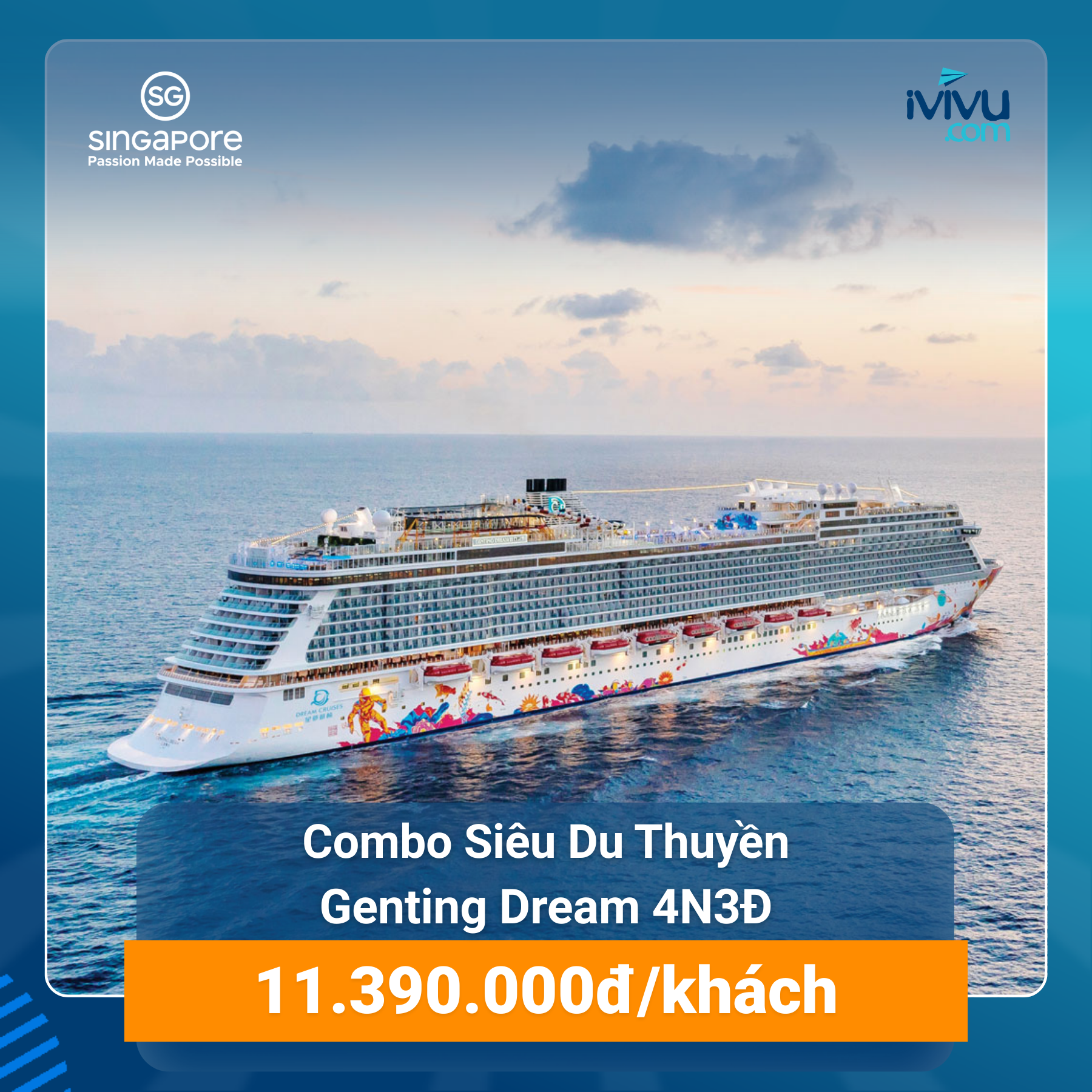 Hành trình 4N3Đ đưa bạn trải nghiệm nghỉ dưỡng cao cấp trên siêu du thuyền Genting Dream, khám phá Singapore – Malaysia. Lịch trình kết hợp thư giãn, giải trí, ẩm thực và tham quan di sản nổi tiếng Malaysia, mang đến kỳ nghỉ trọn vẹn như resort 5 sao giữa đại dương.