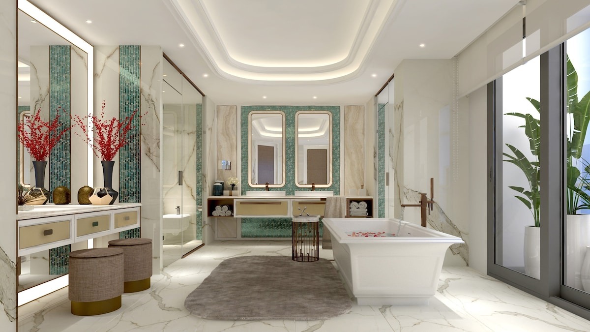 Phòng tắm rộng rãi kết hợp nội thất tiện nghi