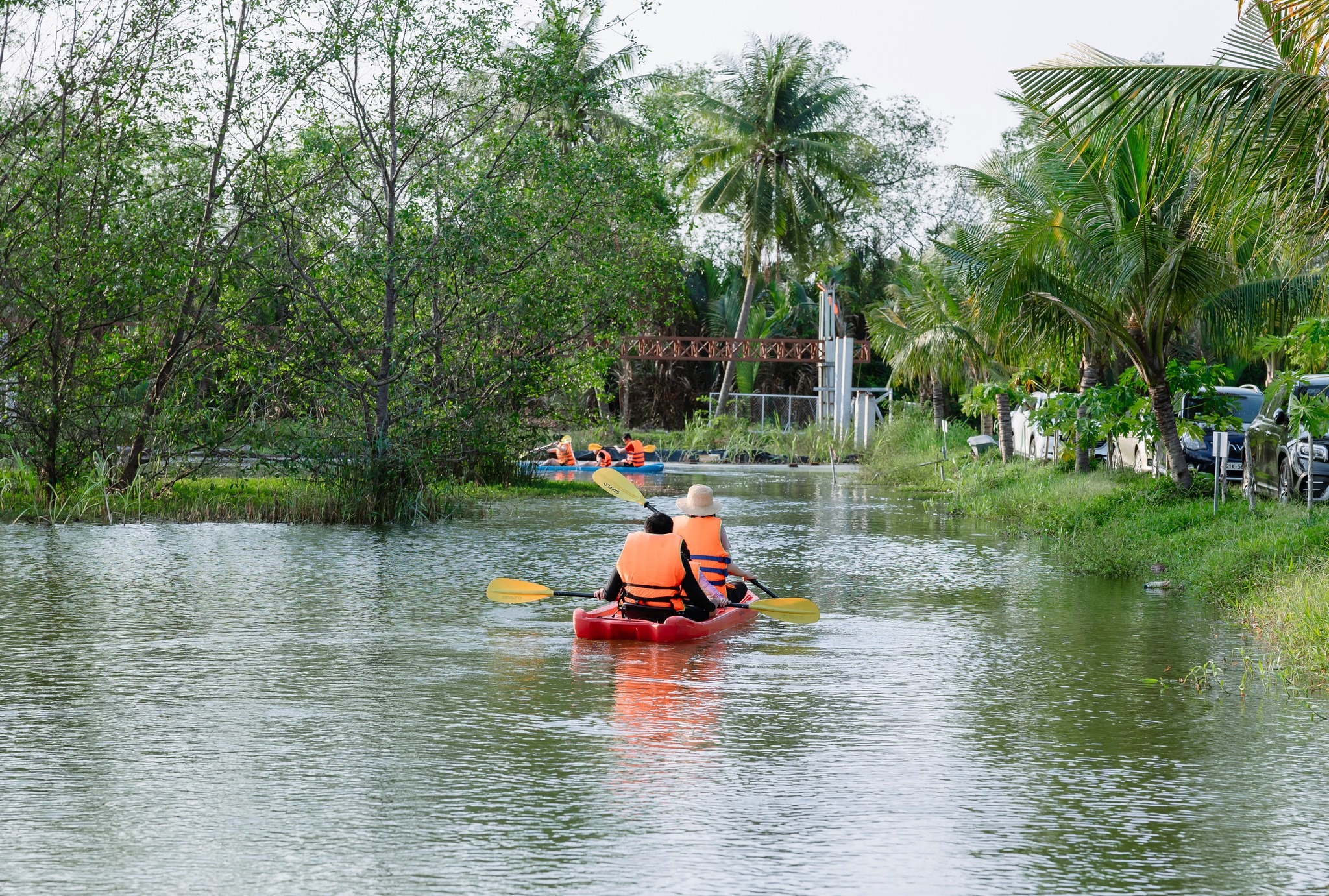 Chèo SUP trên sông. Ảnh: Fb Asia Island Glamping