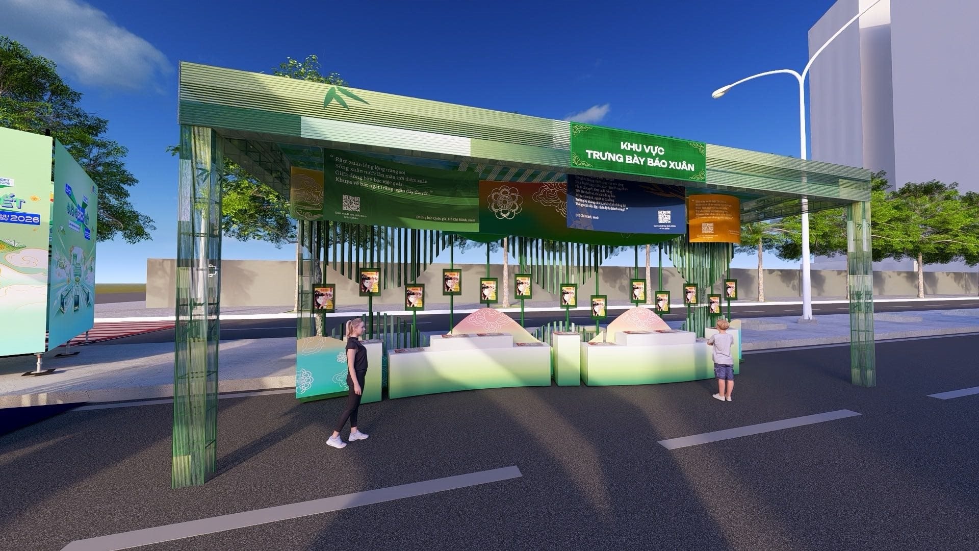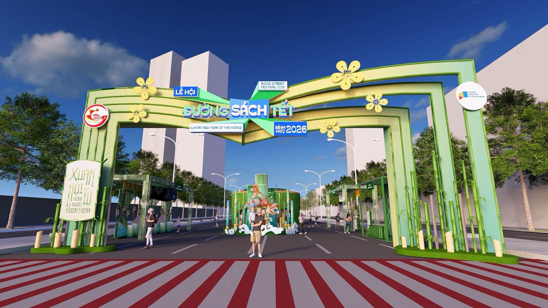Phối cảnh thiết kế cổng chào của Lễ hội Đường sách Tết Bính Ngọ 2026