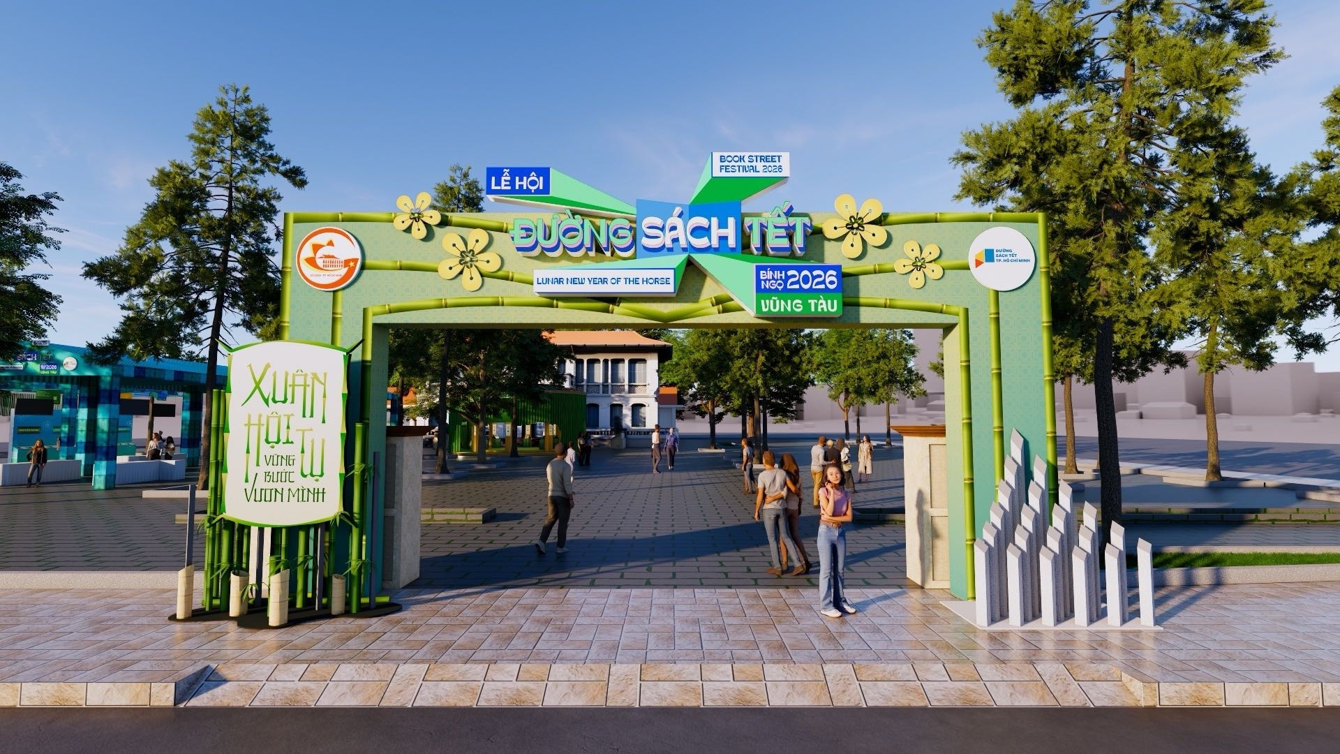 Phối cảnh Lễ hội Đường sách Tết Bính Ngọ 2026 tại phường Vũng Tàu