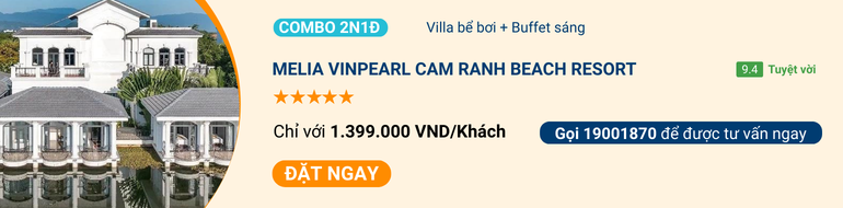 Tọa lạc bên Bãi Dài – một trong những bãi biển đẹp và hoang sơ. Melia Vinpearl Cam Ranh Beach Resort được ví như ốc đảo xanh mướt giữa vịnh Cam Ranh. Khu nghỉ dưỡng sở hữu hệ thống biệt thự sang trọng với bể bơi riêng, lấy cảm hứng từ kiến trúc tân cổ điển châu Âu, bao quanh bởi hồ nước uốn lượn và khu vườn nhiệt đới xanh mát, mang đến không gian riêng tư tuyệt đối.